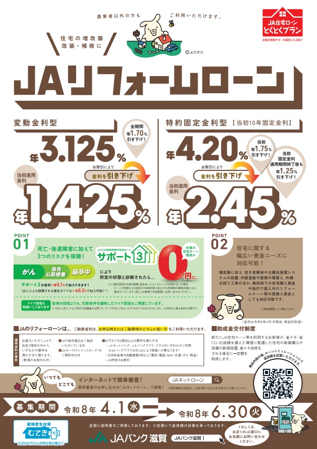 JAのリフォームローンは・・・