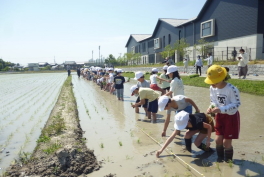 JAグリーン近江管内の小学校で「田んぼ学校」が今年も開催されました。食育授業の一環で、子どもたちに緑豊かな自然に触れ農業への興味をもってもらうことを目的としています。開催するにあたって地元農家や農業委員など、多くの方々のご協力がありました。子どもたちは、慣れないながらも一生懸命作業をし、泥んこになりながら楽しんで田植えをしていました。食の大切さ、農家の苦労、ありがたみを学び、農業について改めて考えるいい機会となりました。